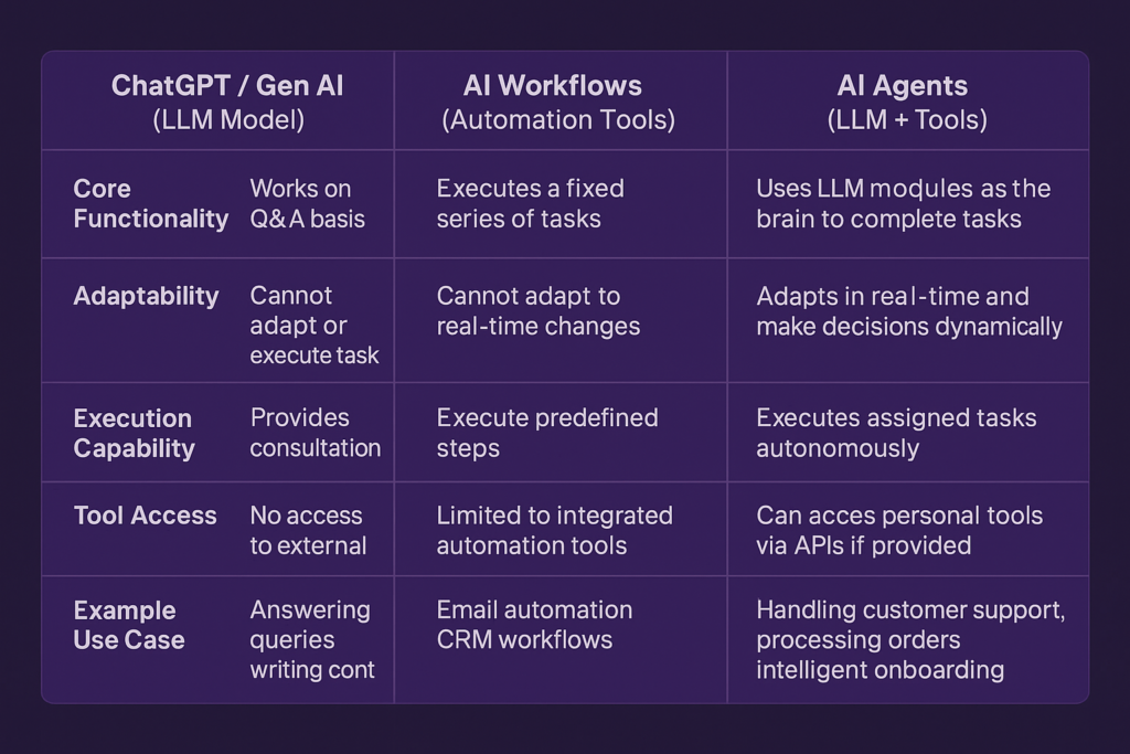 ChatGPT vs AI Workflows vs AI Agents – What’s the Difference?